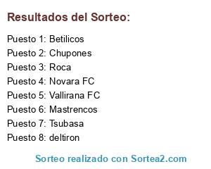 Lista de participantes: deltiron, Betilicos, Tsubasa, Novara FC, Roca, Chupones, Vallirana FC, Mastrencos.