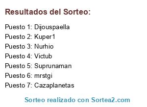 Lista de participantes: Dijouspaella, Suprunaman, Cazaplanetas, Victub, Kuper1, Nurhio, mrstgi.