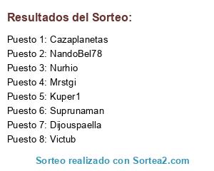 Lista de participantes: Suprunaman, Cazaplanetas, NandoBel78, Victub, Kuper1, Nurhio, Dijouspaella, Mrstgi.