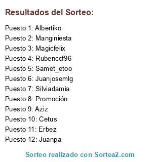 Lista de participantes: Alcanntara, Alexcastilla, Danielsdrag, Luisminho, Matito, Victorvifoor, Cafetin, Vv17ak3r, Wiwi, Xou, Álvaro, Promoción.