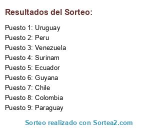 Lista de participantes: Uruguay, Paraguay, Colombia, Guyana, Peru, Surinam, Venezuela, Ecuador, Chile.