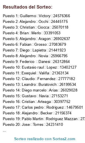 - Puesto 19: Pablo Martin Rodriguez Mazzan 27285085