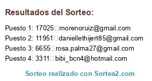 - GANADOR 1 : 17025 morenoruiz@gmail.com
