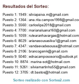 Este sorteo ha sido certificado por Sortea2. Sortea2 garantiza que: