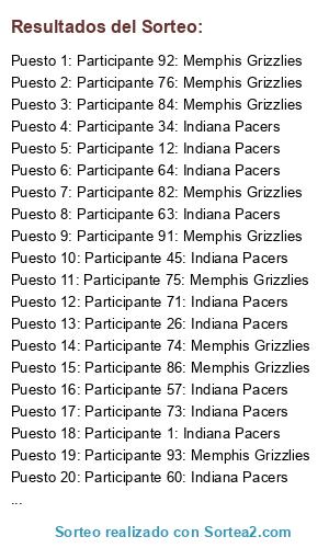 - Puesto 1: Participante 92: Memphis Grizzlies
