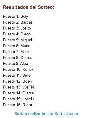 Resultados del sorteo: