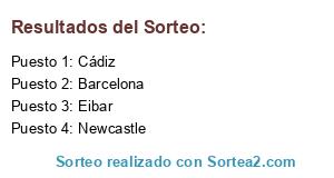 Lista de participantes: Cádiz, Barcelona, Eibar, Newcastle.