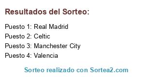 Lista de participantes: Real Madrid, Manchester City, Celtic, Valencia.