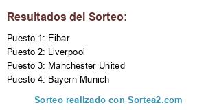 Lista de participantes: Eibar, Bayern Munich, Manchester United, Liverpool.