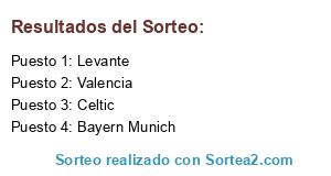 Lista de participantes: Bayern Munich, Celtic, Valencia, Levante.