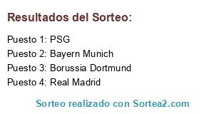 Lista de participantes: Real Madrid, PSG, Bayern Munich, Borussia Dortmund.
