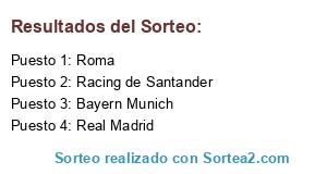 Lista de participantes: Racing de Santander, Roma, Bayern Munich, Real Madrid.