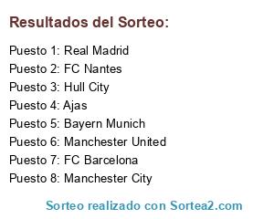 Lista de participantes: FC Nantes, Bayern Munich, Ajas, Manchester City, Manchester United, FC Barcelona, Hull City, Real Madrid.