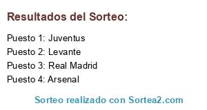 Lista de participantes: Juventus, Arsenal, Real Madrid, Levante.