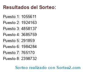 Este sorteo ha sido certificado por Sortea2. Sortea2 garantiza que: