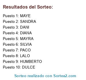 Lista de participantes: MAYRA, MAYE, SANDRA, SILVIA, LALO, PACO, DULCE, HUMBERTO, DANI, DIANA.