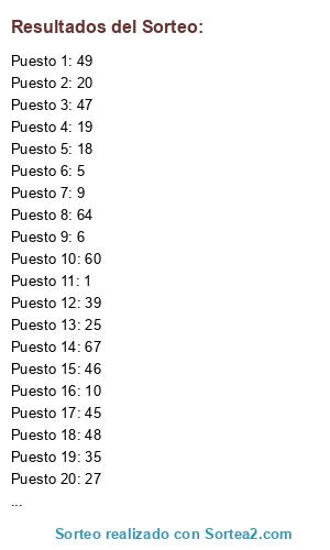 Lista de participantes: 1, 2, 3, 4, 5, 6, 7, 8, 9, 10, 11, 12, 13, 14, 15, 16, 17, 18, 19, 20, 21, 22, 23, 24, 25, 26, 27, 28, 29, 30, 31, 32, 33, 34, 35, 36, 37, 38, 39, 40, 41, 42, 43, 44, 45, 46, 47, 48, 49, 50, 51, 52, 53, 54, 55, 56, 57, 58, 59, 60, 61, 62, 63, 64, 65, 66, 67, 68.