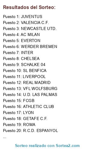 Resultados del sorteo: