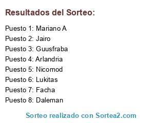 Lista de participantes: Arlandria, Mariano A, Daleman, Facha, Jairo, Lukitas, Nicomod, Guusfraba.