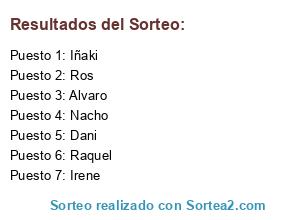 Resultados del sorteo: