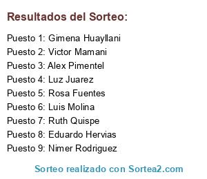 Lista de participantes: Rosa Fuentes, Eduardo Hervias, Gimena Huayllani, Luz Juarez, Victor Mamani, Luis Molina, Alex Pimentel, Ruth Quispe, Nimer Rodriguez.