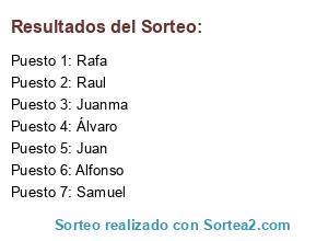 Resultados del sorteo: