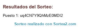 Este sorteo ha sido certificado por Sortea2. Sortea2 garantiza que: