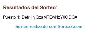 Este sorteo ha sido certificado por Sortea2. Sortea2 garantiza que: