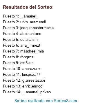 Este sorteo ha sido certificado por Sortea2. Sortea2 garantiza que: