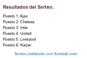 Lista de participantes: United, Inter, Kaizer, Chelsea, Ajax, Liverpool.