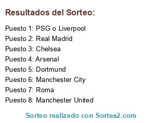 Lista de participantes: Manchester United, Chelsea, Dortmund, Roma, Manchester City, Arsenal, Real Madrid, PSG o Liverpool.