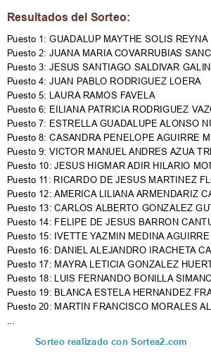 Resultados del sorteo: