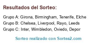 Lista de participantes: Birmingham, Wimbledon, Liverpool, Girona, Tenerife, Rayo, Inter, Depor, Leeds, Oviedo, Chelsea, Elche.