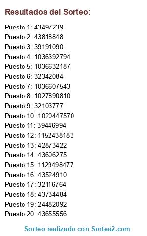 Resultados del sorteo: