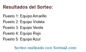 Lista de participantes: Equipo Amarillo, Equipo Azul, Equipo Rojo, Equipo Verde, Equipo Violeta.