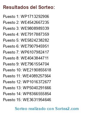 Este sorteo ha sido certificado por Sortea2. Sortea2 garantiza que: