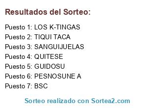 Lista de participantes: PESNOSUNE A, SANGUIJUELAS, BSC, GUIDOSU, QUITESE, TIQUI TACA, LOS K-TINGAS.