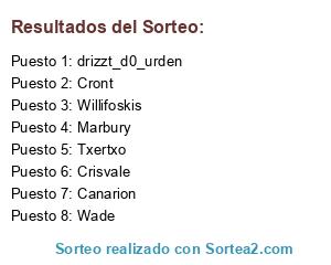 Lista de participantes: Crisvale, Willifoskis, Canarion, Txertxo, Cront, drizzt_d0_urden, Marbury, Wade.