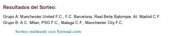 Lista de participantes: Manchester United F.C., Real Betis Balompie, At. Madrid C.F., Manchester City F.C., Malaga C.F., A.C. Milan, F.C. Barcelona, PSG F.C..