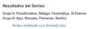 Lista de participantes: Benfica, Panathinaikos, Ajax, Malaga, Marsella, St.Etienne, Fenerbahçe, Palmeiras.