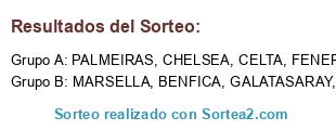 Lista de participantes: MILAN, CELTA, CHELSEA, BENFICA, GALATASARAY, FENERBAHCE, MARSELLA, PALMEIRAS.