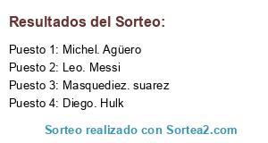 Lista de participantes: Diego. Hulk, Michel. Agüero, Leo. Messi, Masquediez. suarez.