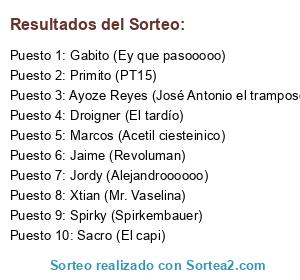 Lista de participantes: Primito (PT15), Jordy (Alejandroooooo), Marcos (Acetil ciesteinico), Gabito (Ey que pasooooo), Sacro (El capi), Spirky (Spirkembauer), Jaime (Revoluman), Droigner (El tardío), Xtian (Mr. Vaselina), Ayoze Reyes (José Antonio el tramposo).
