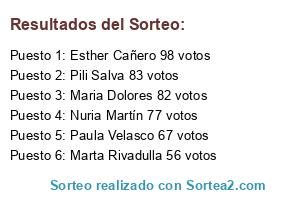 Lista de participantes: Minerva Serrano 117 votos, Esther Cañero 98 votos, Pili Salva 83 votos, Maria Dolores 82 votos, Alicia Martín 78 votos, Nuria Martín 77 votos, Iván León 73 votos, Erika Alvarez 67 votos, Paula Velasco 67 votos, Marta Rivadulla 56 votos.