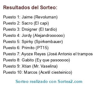 Resultados del sorteo: