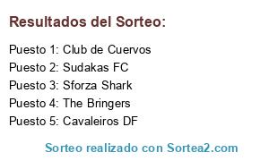 Lista de participantes: Club de Cuervos, The Bringers, Sudakas FC, Sforza Shark, Cavaleiros DF.