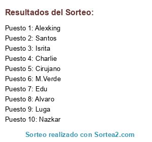 Lista de participantes: Cirujano, Isrita, Nazkar, Alexking, Alvaro, Edu, Charlie, Luga, M.Verde, Santos.