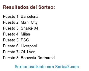 Lista de participantes: Barcelona, Milán, Shalke 04, Man. City, Ol. Lyon, Liverpool, Borussia Dortmund, PSG.