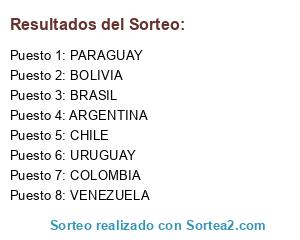 Lista de participantes: BRASIL, ARGENTINA, CHILE, PARAGUAY, BOLIVIA, URUGUAY, VENEZUELA, COLOMBIA.