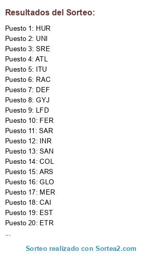 Lista de participantes: ARS, ITU, CAI, SRE, FER, EST, BOC, ATL, RAC, COL, LAN, SAR, HUR, LFD, UNI, SAN, MER, GYJ, CEN, ETR, INR, DEF, GLO, TIG.